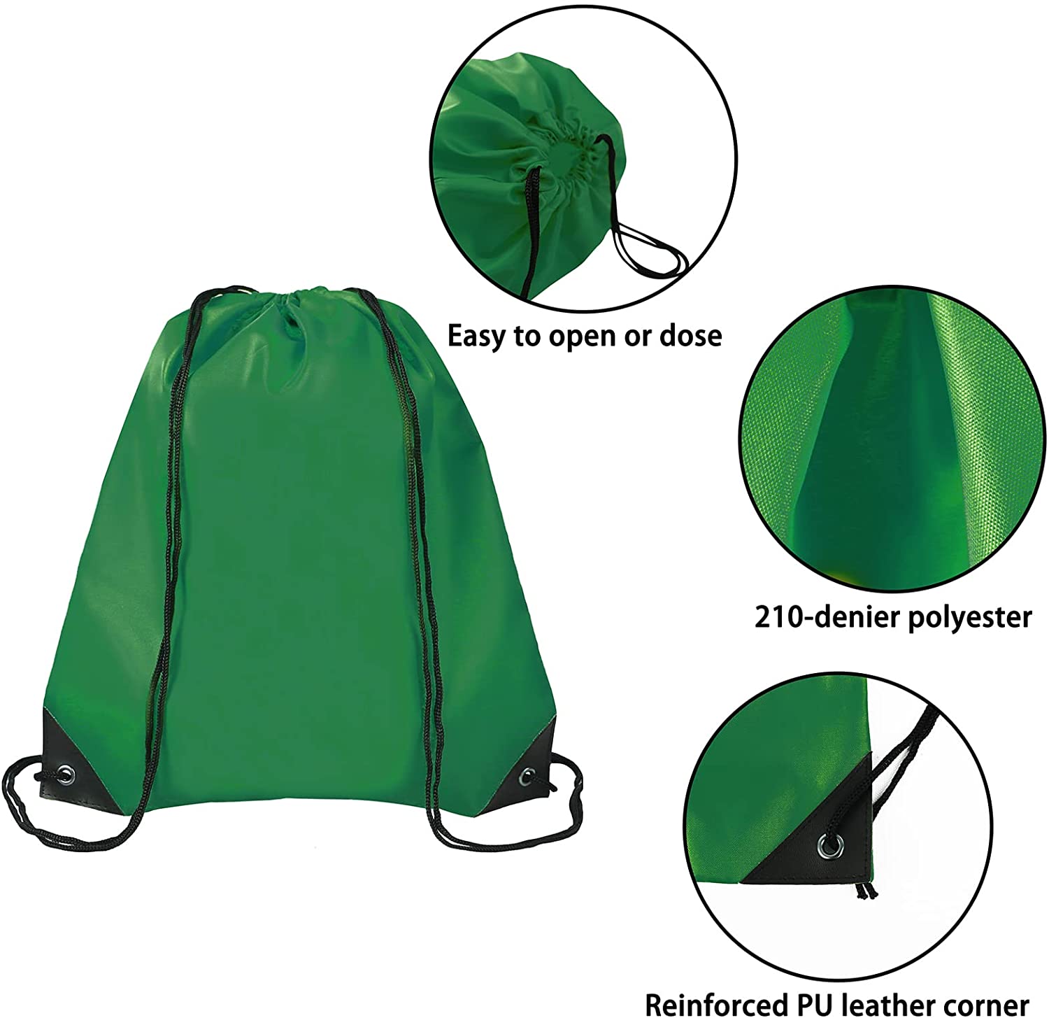 Drawstring Bags :There are 2 straps each side and bottom corners are reinforced with triangle PU leather with 2 meral grommets.