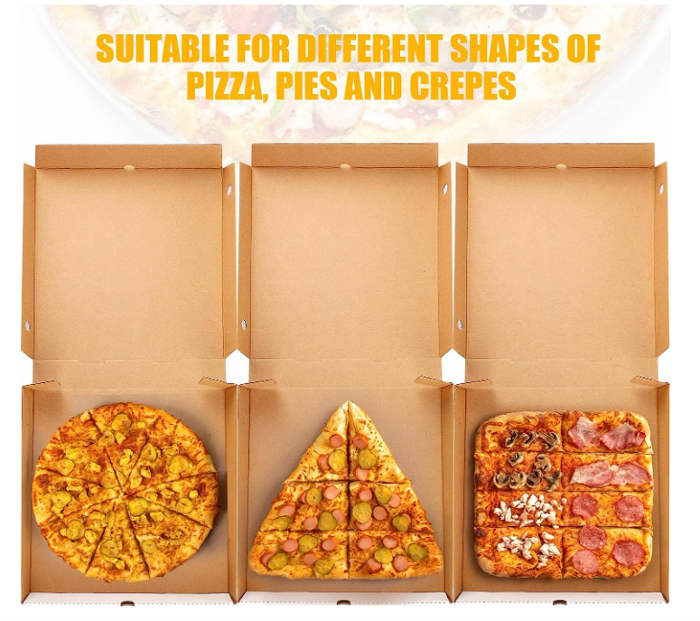 · Our recycled kraft brown pizza boxes are thick and sturdy, not easy to break or rip, safe closure ensures contents won't fall out when delivering,