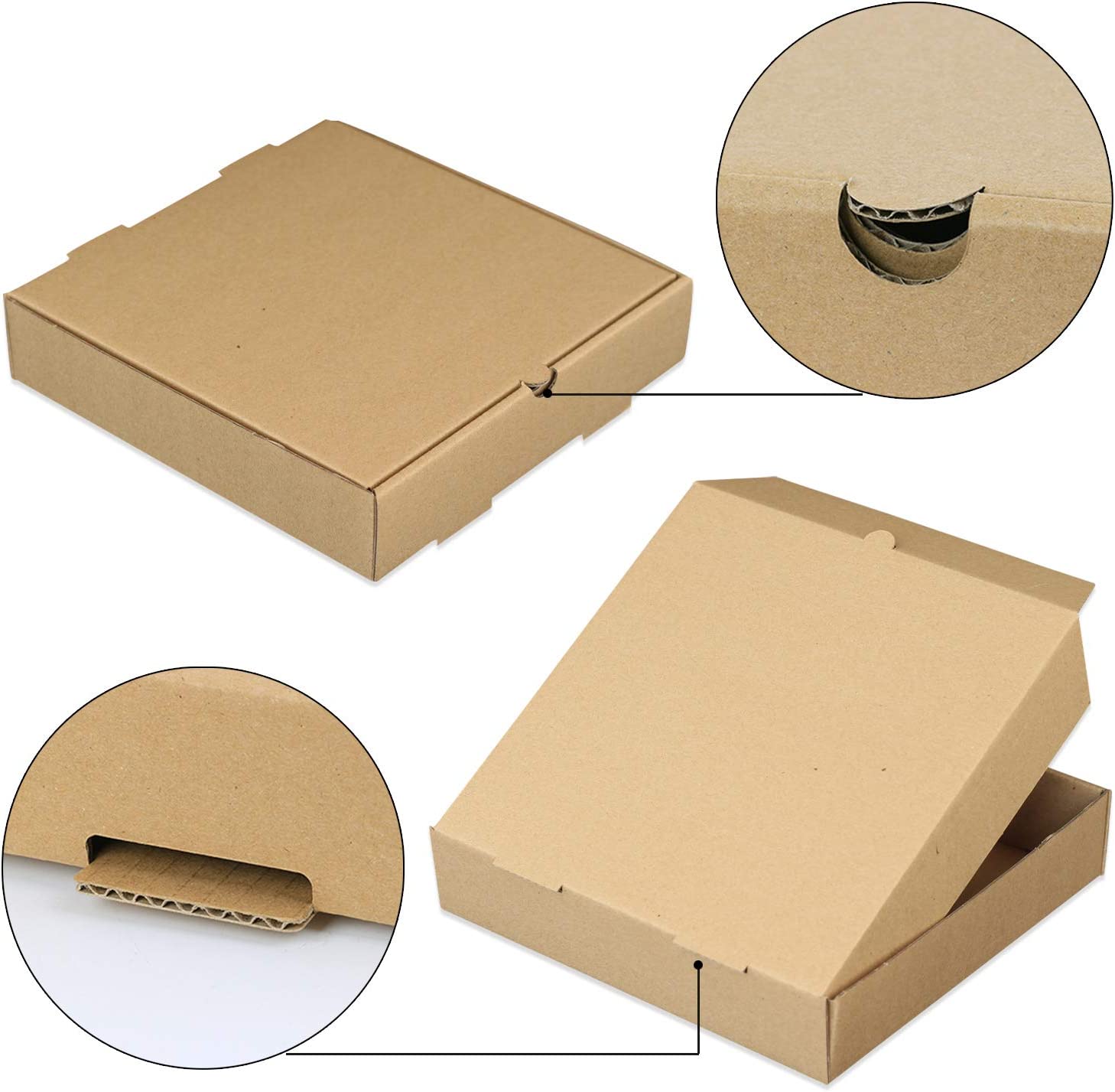· Our recycled kraft brown pizza boxes are thick and sturdy, not easy to break or rip, safe closure ensures contents won't fall out when delivering,